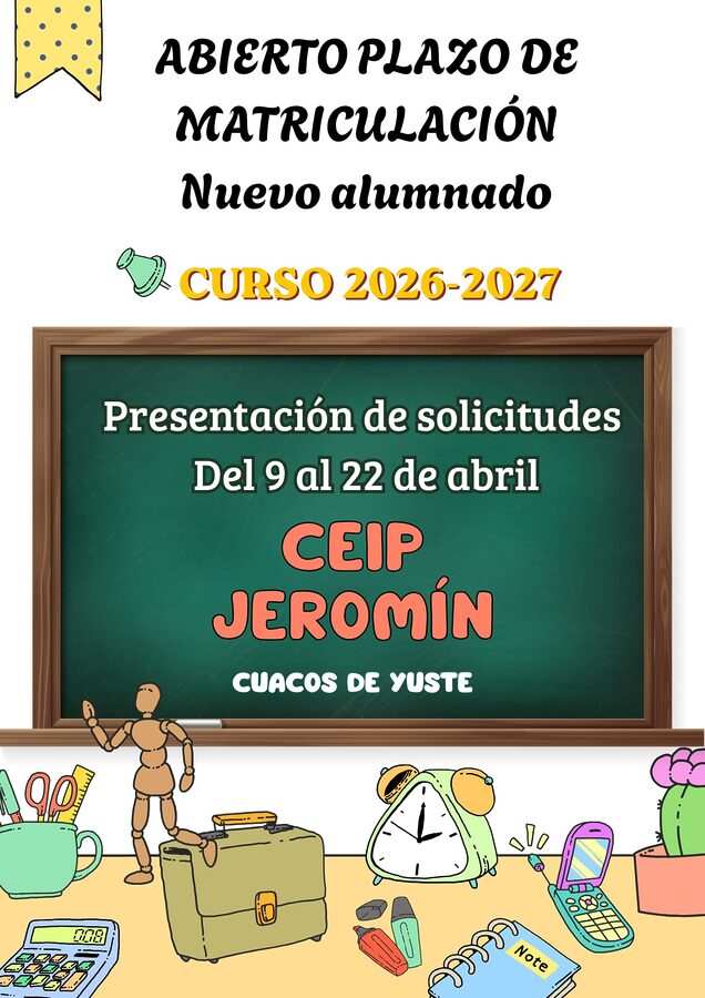 El día 9 de abril se abre el plazo para realizar la matriculación del alumnado nuevo que se vaya a incorporar al centro. Estará disponible hasta el día 22 de abril. La documentación…